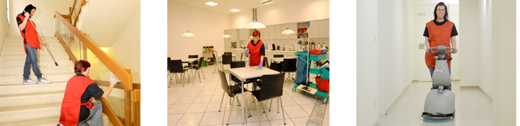 Durch den fachmännischen und objektgerechten Einsatz modernster Maschinen und Geräte und dem Einsatz des 4-Farb-Systems, erzielen sie den gewünschten Reinigungserfolg. Langfristig im selben Objekt tätige Mitarbeiter sorgen für eine hohe Identifikation mit dem Kunden.