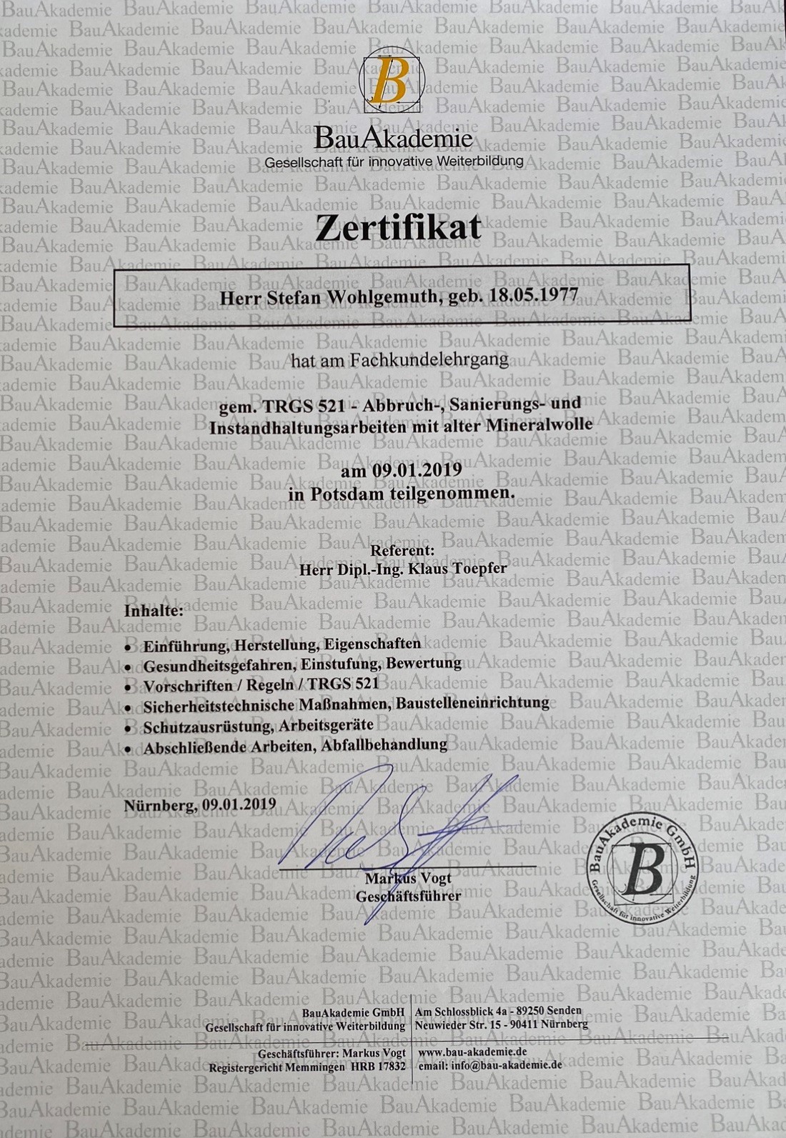 Zertifizierungen/ Nachweise